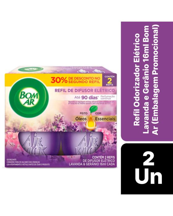 Refil Odorizador Eletrico Lavanda E Geranio 16ml C/2 Bom Ar (embalagem Promocional)