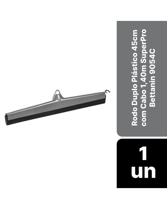 Características:O Rodo Duplo Push SuperPro Bettanin, é ideal a limpeza de diversos tipos de pisos em geral, pois une flexibilidade e resistência em um só produto. Possui encaixe especial que garante que o pano não solte do rodo durante a limpeza.Detalhes:- Marca: SuperPro;- Fabricante: Bettanin;- Modelo: Push;- Referência: 9054C;- Linha: Rodo;- Tipo: Duplo;- Cor: Cinza/Preto;- Tamanho rodo: 45cm;- Contém: 1 unidade do produto;- Acompanha: Cabo de 1,40cm na cor cinza;- Prático na limpeza.Ideal para: - Indicada para a limpeza de pisos internos e externos em geral.Composição:- Fabricado em Material Sintético PP, Pigmento e Metal.Medidas: - Dimensões do produto: 45,9 x 2,7 x 1,45cm (CxLxA);- Peso: 0,29kg.* As especificações podem ser alteradas sem aviso prévio ** Imagem meramente ilustrativa.