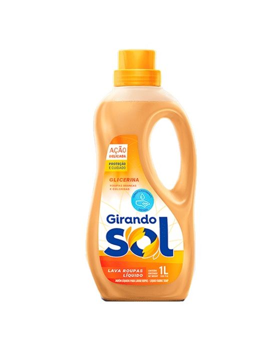 Características - Lava Roupas Líquido Girando Sol - Embalagem: 1 LItro - Cor: Amarelo / Glicerina - Produto Ecológico - NÃO CONTÉM TRIPOLIFOSFATO DE SÓDIO. - Preserva o oxigênio das águas. - Cuida e perfuma suas roupas. - Com enzimas superativas. - Para todo tipo de máquina. Modo de Usar - Leia as instruções na etiqueta da roupa. - Separe as roupas brancas das coloridas. - IMPORTANTE: Para aproveitar ao máximo o seu produto e obter os melhores resultados de limpeza, rendimento e perfumação, use sempre a dosagem recomendada. - ATENÇÃO: não coloque o produto direto sobre o tecido. Dissolva-o na água e depois coloque a roupa. - Para obter melhores resultados, recomenda-se deixar a roupa de molho por 1 hora. - Nunca deixe suas roupas de molho ao sol. - Seque as roupas brancas à luz natural e as coloridas à sombra. Precauções - CONSERVE FORA DO ALCANCE DAS CRIANÇAS E DOS ANIMAIS DOMÉSTICOS. - Não ingerir. - Evite inalação ou aspiração, contato com os olhos. - Evite o contato prolongado com a pele. - Depois de utilizar este produto, lave e seque as mãos. - Em caso de contato com os olhos ou com a pele, lave imediatamente com água em abundância. - Em caso de ingestão, não provoque vômito e consulte imediatamente o Centro de Intoxicações ou o médico, levando o rótulo do produto. - Manter o produto em sua embalagem original. - Não reutilizar a embalagem vazia para outros fins. * As especificações podem ser alteradas sem aviso prévio ** Imagem meramente ilustrativa