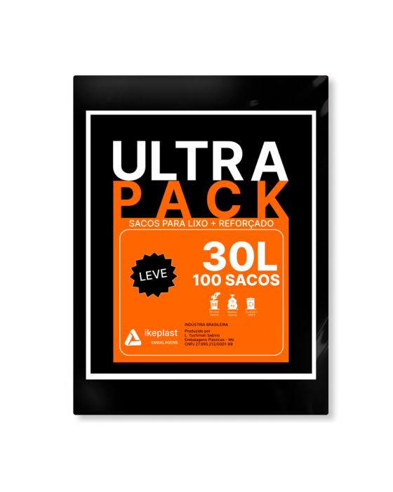Características:Os Sacos Plásticos de 30 litros na cor preta são ideais para coletas seletivas e acondicionamento de lixo de sua casa e empresa.Os Sacos de Lixo Ultra Pack estão disponíveis também nas opções: 15L, 50L, 100L, 150L, 200L e 300L em nosso site!Detalhes:- Marca: Ultra Pack.- Linha: Saco de lixo.- Tipo: Leve.- Cor: Preto.- Litros: 30 Litros.- Capacidade: 6kg.- Contém: 1 embalagem com 100 sacos plásticos.- Micras: 3 Micras.- Classe 1, tipo E.- Resíduo Normal.Indústria Brasileira.Ideal para:- Ideal para Hospitais, Hotéis, Indústrias, Consultórios, Clínicas, Restaurantes, Shopping Centers, Condomínios, Faculdades, Escolas e muito mais.Uso:- Uso exclusivo para acondicionamento/descarte de lixo.Medida:- 55 x 59cm.ATENÇÃO! Cuidado com o uso indevido por crianças, colocando o saco plástico a cabeça poderá asfixiá-la e provocar acidentes!* As especificações podem ser alteradas sem aviso prévio ** Imagem meramente ilustrativa.