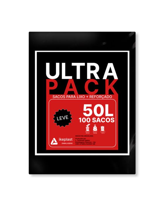 Características:Os Sacos Plásticos de 50 litros na cor preta são ideais para coletas seletivas e acondicionamento de lixo de sua casa e empresa.Os Sacos de Lixo Ultra Pack estão disponíveis também nas opções: 15L, 30L, 100L, 150L, 200L e 300L em nosso site!Detalhes:- Marca: Ultra Pack.- Linha: Saco de lixo.- Tipo: Leve.- Cor: Preto.- Litros: 50 Litros.- Capacidade: 10kg.- Contém: 1 embalagem com 100 sacos plásticos.- Micras: 3 Micras.- Classe 1, tipo E.- Resíduo Normal.Indústria Brasileira.Ideal para:- Ideal para Hospitais, Hotéis, Indústrias, Consultórios, Clínicas, Restaurantes, Shopping Centers, Condomínios, Faculdades, Escolas e muito mais.Uso:- Uso exclusivo para acondicionamento/descarte de lixo.Medida:- 60 x 70cm.ATENÇÃO! Cuidado com o uso indevido por crianças, colocando o saco plástico a cabeça poderá asfixiá-la e provocar acidentes!* As especificações podem ser alteradas sem aviso prévio ** Imagem meramente ilustrativa.