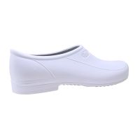 Características:Sapato ocupacional impermeável, projetado para vários ambientes de trabalho e em conformidade com as normas de segurança da ABNT NBR ISO 20344 e 20347.A linha Soft Grip foi desenvolvida para garantir segurança e leveza aos profissionais. Feitos com cabedal de bi-componente em PU e solado de borracha injetada diretamente ao cabedal. O solado de borracha latex é flexível, antiderrapante proporcionando proteção contra derrapagens em todas as direções e facilitando o escoamento da água em pisos molhados.Detalhes:- Marca: Kadesh;- Modelo: Soft Grip;- Referência: 85SGB41;- Linha: Sapatos de proteção individual;- Cor: Branco;- Tamanho: Número 35;- CA: 50.921;- Norma ABNT: NBR ISO 20344 e 20347;- Contém: 1 par de sapatos;- Não possui palmilha e biqueira;- Antiderrapante;Indústria Brasileira.Ideal para:- Indicado para o uso nos segmentos de limpeza, laboratórios, saúde, consultórios, farmacêuticos e hospitalar;Diferenciais:- O solado é injetado diretamente no cabedal em poliuretano expandido, proporcionando conforto e resistência à abrasão. As ranhuras transversais garantem a eliminação instantânea de fluidos, reduzindo o risco de escorregões em superfícies molhadas ou gordurosas;- Cabedal: O produto se adapta perfeitamente ao pé do usuário com a sensação de extensão do próprio corpo, o que garante um excepcional conforto e segurança;- Palmilha Interna: Acompanha palmilha higiênica removível, dublada em tecido para absorção do suor. Reduz o impacto proporcionando conforto aos pés e um caminhar uniforme e suave.Orientações:- Secagem: Armazenar em local seco e ventilado. Secar na sombra. Não secar ao sol ou próximo de fontes com incidência de calor forçado. As condições ideais de armazenamento são a 27°C e 63% de umidade;- Limpeza e higienização: Realizar a limpeza do calçado com um pano umedecido ou utilizando sabão e escova com cerdas macias, externamente e internamente. Não utilizar produtos químicos. As palmilhas podem ser lavadas naturalmente com água e sabão;- Uso: O solado antiderrapante deste produto é feito para enfrentar pisos lisos e escorregadios. Evite utilizar em pisos ásperos como asfaltos, calçadas ou em ambientes onde o sistema antiderrapante não é necessário. Desta forma você estará preservando a qualidade e durabilidade do produto.Recomendação: - Utilizar meias de algodão ao invés de sintéticas, pois absorvem melhor o suor dos pés. A troca das meias deve ser feita todos os dias, não as reutilize antes de lavá-las. Ao final de cada dia retire a palmilha interna para secar o suor absorvido;- Nunca modifique seu calçado, além de alterar as características e automaticamente perder a Certificação de Autorização – C.A. do MTE, pode gerar riscos de acidentes;- O calçado Soft Grip é composto por materiais recicláveis, por isso procure fazer o descarte de maneira correta.Composição:- Solado: borracha 100% natural, com ranhuras transversais que permitem o escoamento de líquidos;- Cabedal: Confeccionado todo com material Elastômero Polimérico Termoplástico Expandido (PU).Medidas:- Dimensões do produto: 32,5 x 18,5 x 11,1cm (CxLxA);- Peso: 450g.Garantia do fornecedor: 90 dias contra defeitos de fabricação.* As especificações podem ser alteradas sem aviso prévio ** Imagem meramente ilustrativa.