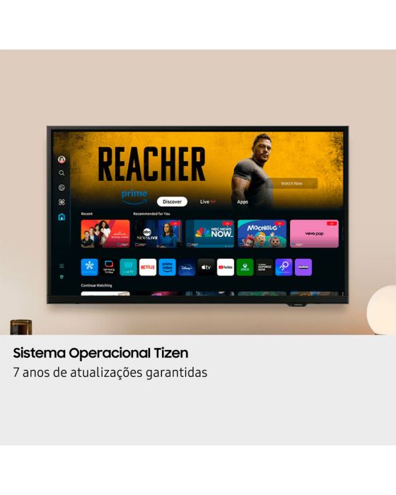 Características:- Imagem vibrante com profundidade e contraste aprimorados: A Smart TV Monitor Samsung 32 LS32H5000FGXZD entrega qualidade visual superior com tecnologia HDR, que amplia níveis de brilho e contraste para revelar detalhes mesmo em cenas claras ou escuras. O recurso Realce de Contraste analisa automaticamente as áreas da tela, ajustando a luminosidade de forma inteligente para tornar cada conteúdo mais natural e envolvente.- Cores mais ricas e realistas com PurColor: A tecnologia PurColor amplia o espectro de tons exibidos, proporcionando imagens mais vivas e imersivas. Essa otimização permite que filmes, séries, vídeos e jogos sejam exibidos com fidelidade cromática aprimorada, oferecendo uma experiência visual mais realista no dia a dia.- Segurança avançada e privacidade garantida com Knox: Equipada com a Central de Segurança Knox, a TV protege dados, senhas e dispositivos conectados com camadas de segurança contra invasões. A função Central de Senhas permite armazenar logins em um único local seguro e acessar serviços por meio de QR Code, garantindo praticidade com proteção reforçada.- Sistema operacional Tizen e entretenimento ilimitado: A TV conta com o sistema Tizen, que oferece acesso rápido a aplicativos de streaming e atualizações contínuas. Com o Samsung TV Plus, centenas de canais gratuitos de filmes, notícias, esportes e conteúdo infantil ficam disponíveis sem assinatura, ampliando as opções de entretenimento.- Som imersivo com tecnologia de movimento virtual: O sistema de Som em Movimento Virtual cria uma experiência sonora 3D que acompanha a ação exibida na tela, aumentando o nível de imersão em filmes, séries e vídeos. Com 10W de potência e som adaptativo, o áudio é ajustado automaticamente para cada tipo de conteúdo.- Design slim para ambientes modernos: Com design fino e elegante, o monitor se integra facilmente a diferentes estilos de decoração. A tela plana de 32 e proporção 16:9 oferece visual limpo e ideal para salas, quartos, escritórios e espaços multimídia.- Conectividade completa para múltiplos dispositivos: O modelo oferece Wi-Fi 4, duas entradas HDMI, uma porta USB 2.0, Ethernet e suporte para espelhamento de dispositivos móveis. Compatível com Bixby e recursos sem fio, permite integração com smartphones e outros aparelhos, facilitando o uso profissional e doméstico.- Compatibilidade e eficiência energética: Alimentação CA 100–240 V (50/60 Hz) com consumo máximo de 60W e fonte interna. Suporte a HDR10+ e funcionalidades de segurança digital com a Central de Segurança Knox proteção por camadas para dados e senhas, incluindo Central de Senhas e login via QR Code.- Aplicação versátil em casa ou no trabalho: Funciona como monitor e TV Smart, ideal para escritórios, home office, salas de reunião, ambientes estudantis ou lazer doméstico. Seu tempo de resposta de 9,5 ms e taxa de atualização de 60 Hz asseguram boa performance para navegação, vídeos e uso geral.- Sobre a marca Samsung: A Samsung é líder global em tecnologia e inovação, reconhecida pela qualidade e durabilidade de seus eletrônicos. Seus monitores e televisores unem design refinado, desempenho confiável e recursos inteligentes, oferecendo experiências superiores em imagem, conectividade e segurança.- Itens inclusos na embalagem: 1 Smart TV Monitor Samsung 32 LS32H5000FGXZD, 1 par de base, 1 controle remoto, 1 cabo de alimentação e um manual de usuário.- Garantia do fornecedor: 1 ano contra defeitos de fabricação.- Dimensões do produto sem base:Comprimento: 73,32cm;Largura: 7,22cm;Altura: 43,89cm; Peso: 3,8kg.- Dimensões do produto com base:Comprimento: 73,32cm;Largura: 11,73cm;Altura: 45,18cm;Peso: 3,8kg.* As especificações podem ser alteradas sem aviso prévio ** Imagem meramente ilustrativa.