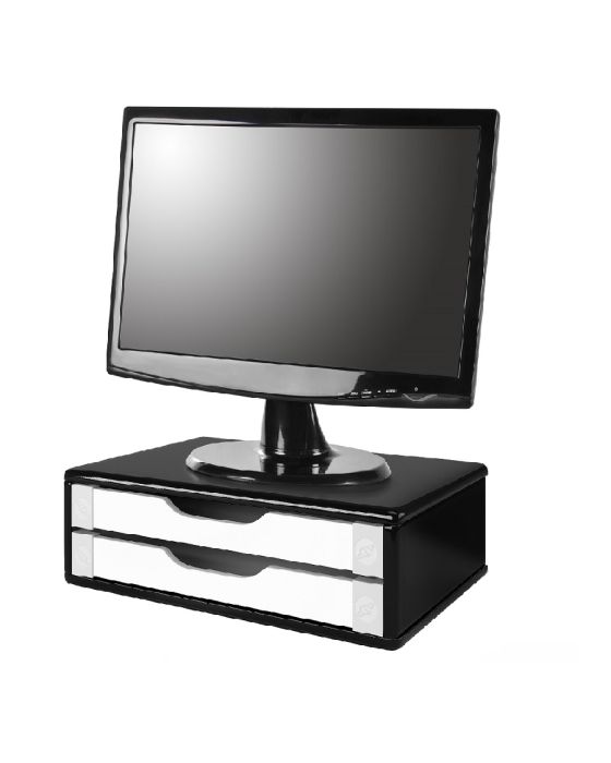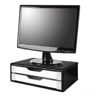 Caracteristicas:Suporte para monitor Souza, ideal para elevar o posicionamento de seu monitor. O suporte possui 2 gavetas para não perder espaço e ainda ajudar na organização de sua mesa.- Suporte para monitor em MDF- Cor: Black Piano c/gaveta branca- Medida aproximada do produto:12 x 26 x 39 cm- Medida aproximada da gaveta: 21,5 x 33cm* As especificações podem ser alteradas sem aviso prévio** Imagem meramente ilustrativa*** Monitor não incluso
