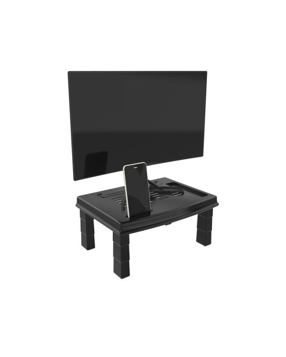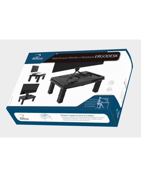 Características: Trabalhar horas, dia a dia, olhando para a tela do computador requerem cuidados especiais com sua postura. Um ambiente sem os ajustes de Ergonomia necessários, resultam em dores, fadiga e tensão muscular em diversas regiões do corpo. O Suporte para Monitor Ergodesk da Reliza faz a correção da linha de visão do usuário à tela do monitor, aliviando o esforço exercido sobre a região cervical e ajuda a evitar fadiga nas regiões da lombar, nuca e pescoço. Um ambiente com Ergonomia resulta em pessoas saudáveis, sem fadiga, sem dores e sem estresse!Cuide da sua saúde, corrija sua postura em frente ao computador.- Produto possui Laudo Ergonômico em conformidade com a NR17 do Ministério do Trabalho (Norma Regulamentadora – Ergonomia). Previne Doenças Ocupacionais (LER/DORT) preservando a integridade física do usuário.- Regulagem de altura – apresenta regulagem de altura em quatro níveis, permitindo o ajuste correto da visão conforme a estatura da pessoa.- Pronto para usar – não é necessário uso de parafusos ou qualquer ferramenta.- Durabilidade e Resistência – estrutura do Suporte desenvolvida em polipropileno (PP) 100% reciclado, produto amigo do ambiente.- Mais espaço na mesa de trabalho – Os Suportes para Monitor Reliza são especialmente desenvolvidos com seu interior vazado (espaço abaixo da plataforma de apoio do monitor), provendo ainda mais espaço útil para a mesa de trabalho.- Adequado para monitores LCD/LED de até 27 aproximadamente e Notebook´s (verificar características técnicas).- Alça de elevação para Notebook.- Organizador de cabos.- Suporte para celular integrado com entrada para carregador.- Compartimento porta-objetos.- Dimensões: 3,5cm até 17,5cm x 38 cm x 28 cm (A x L x P)**Não acompanha monitor* As especificações podem ser alteradas sem aviso prévio ** Imagem meramente ilustrativa