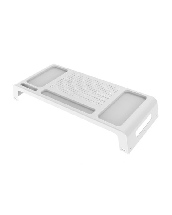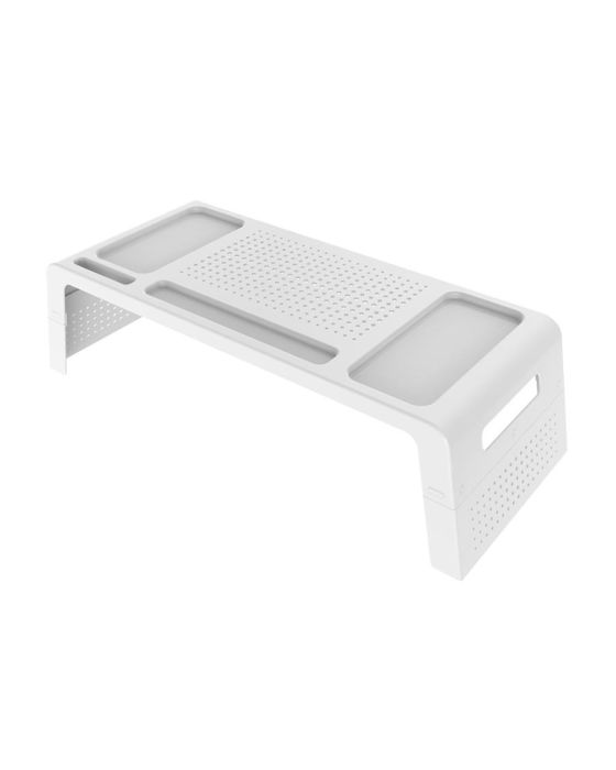 Caracteristicas:Design estrategicamente pensado tanto para apoiar os equipamentos, quanto para organização de outros acessórios da sua mesa.- Tamanho adequado para deixar o teclado na parte de baixo do suporte- Local para smartphone de pé- Possui 3 ajustes de altura (7,9cm/ 12,4cm / 15,5cm)- Ideal para organizar e apoiar monitor ou notebook- Compartimento para armazenar: lápis, canetas, réguas, grampeador, blocos de anotações etc.- Produzido em poliestireno- Medidas: 15,5x23,7x59cm * As especificações podem ser alteradas sem aviso prévio ** Imagem meramente ilustrativa