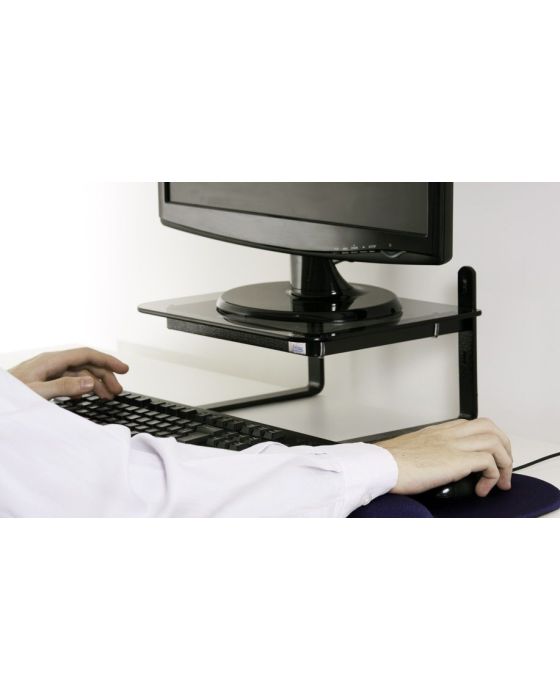 Características: Um ambiente sem os ajustes de Ergonomia necessários, resultam em dores, fadiga e tensão musculuar em diversas regiões do corpo. O Suporte para Monitor da Reliza faz a correção da linha de visão do usuário à tela do monitor, aliviando o esforço exercido sobre a região cervical e ajuda à evitar fadiga nas regiões da lombar, nuca e pescoço. - Produto Ergonômico em conformidade com a NR 17 do Ministério do Trabalho (Norma Regulamentadora - Ergonomia). Previne Doenças Ocupacionais (LER/DORT) preservando a integridade física do usuário.- Regulagem de altura - apresenta regulagem de altura em três níveis, permitindo o ajuste correto da visão conforme a estatura da pessoa.- Pronto para usar - não é necessário uso de parafusos ou qualquer ferramenta.- Durabilidade e Resistência - estrutura do Suporte desenvolvida em aço, com pintura especial antiferrugem.- Mais espaço na mesa de trabalho - os Suportes para Monitor Reliza são especialmente desenvolvidos com seu interior vazado (espaço abaixo da plataforma de apoio do monitor), provendo ainda mais espaço útil para a mesa de trabalho.- Adequado para monitores LED de até 27 aproximadamente (verificar características técnicas).- Vidro com cantos arredondados garantindo total segurança contra acidentes.- Produto com Laudo Técnico de Conformidade Ergonômica, emitido por profissional especializado na Saúde do Trabalho.- 3 níveis de ajuste.-Níveis de regulagem de altura: 100 / 140 / 180 mm.- Medida entre eixos dos perfis em L: 260 mm.- Medida da mesa plana de vidro: 330 x 250 x 6 mm.- Estrutura em aço e pintura eletrostática.- Cor: Estrutura Preta/Vidro Fumê**Não acompanha monitor* As especificações podem ser alteradas sem aviso prévio ** Imagem meramente ilustrativa