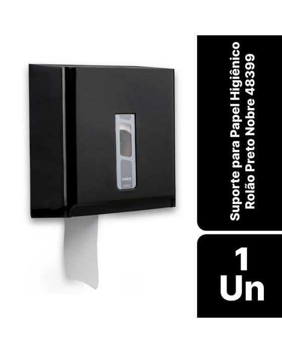 Características:O Suporte para Papel Higiênico Rolão Nobre é indicado para banheiros e lavabos, foi desenvolvido especialmente para ambientes de baixa circulação de pessoas e possui intervalo de troca maior do que com os rolos convencionais, você ganha mais agilidade e economia, além de proteger o papel higiênico da umidade e deixar seu banheiro muito mais bonito!Detalhes:- Marca: Nobre;- Referência: 48399;- Linha: Suporte para Papel Higiênico;- Tipo de papel: Rolão;- Cor: Preto;- Capacidade: rolos de 200m a 500m;- Contém: 1 unidade do produto;- Otimiza espaço da parede;- Além de proteger o papel higiênico da umidade e deixar seu banheiro muito mais bonito;- Intervalo de troca maior do que com rolos convencionais, você ganha mais agilidade e economia.Ideal para:- É indicado para banheiros e lavabos.Modo de uso:- Pressione o botão para abrir; - Abra com cuidado, puxando a parte frontal para a frente e para baixo;- Fixe o dispensador na parede utilizando os parafusos que o acompanham;- Abasteça com papel higiênico rolão, feche o dispensador e pronto.Precauções:- Na instalação, é importante verificar a existência de encanamentos no local da parede em que seu dispenser será instalado;- Não utilize água sanitária ou soluções cloradas na higienização do produto;- Para limpeza do dispenser, utilize pano úmido e detergente neutro;- Não utilizar materiais abrasivos.Composição:- Fabricado em Polipropileno (PP).Medidas:- Dimensões do produto: 31,4 x 29 x 13,1cm (AxLxP);- Peso: 468g.Conteúdo da embalagem: 1 Suporte, 4 parafusos e 4 buchas.* As especificações podem ser alteradas sem aviso prévio ** Imagem meramente ilustrativa.