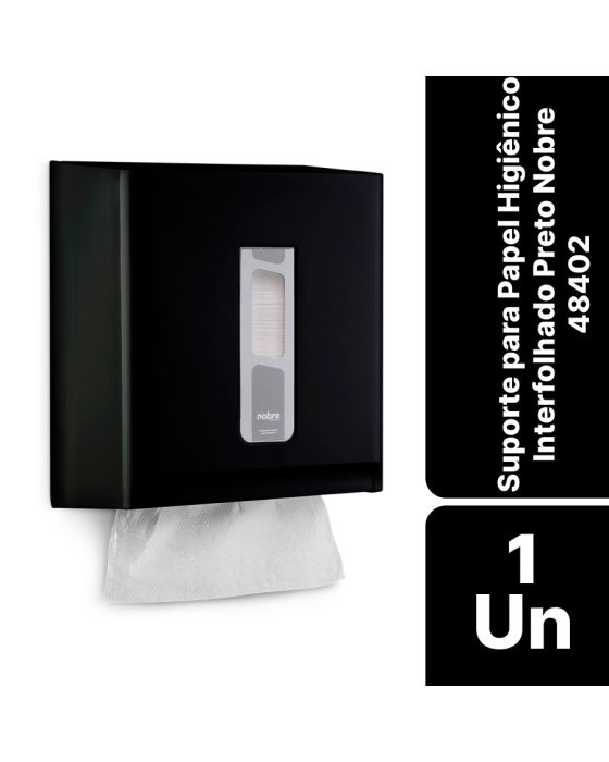 Características:O Suporte para Papel Toalha Interfolhado Nobre é indicado para cozinhas, banheiros, churrasqueiras e lavabos, possui facilidade no uso e instalação e pode ser um aliado para diversos ambientes!Foram feitas pesquisas, onde comprovam que panos de prato acumulam e espalham milhares de bactérias para panelas, pratos, copos, talheres e demais utensílios domésticos em função do seu mau uso na secagem das mãos.Detalhes:- Marca: Nobre;- Referência: 48402;- Linha: Suporte para Papel Toalha;- Tipo de papel: Interfolhado;- Cor: Preto;- Contém: 1 unidade do produto;- Otimiza espaço da parede;- Seque suas mãos apenas com toalhas descartáveis e ganhe muito mais facilidade no uso e instalação;- Perfeito para diversos ambientes.Ideal para:- É indicado para cozinhas, banheiros, churrasqueiras e lavabos.Modo de uso:- Pressione o botão para abrir; - Abra com cuidado, puxando a parte frontal para a frente e para baixo;- Fixe o dispensador na parede utilizando os parafusos que o acompanham;- Abasteça com papel higiênico interfolhado, feche o dispensador e pronto.Precauções:- Na instalação, é importante verificar a existência de encanamentos no local da parede em que seu dispenser será instalado;- Não utilize água sanitária ou soluções cloradas na higienização do produto;- Para limpeza do dispenser, utilize pano úmido e detergente neutro;- Não utilizar materiais abrasivos.Composição:- Fabricado em Polipropileno (PP).Medidas:- Dimensões do produto: 28 x 13 x 24,5cm (AxLxP);- Peso: 698g.Conteúdo da embalagem: 1 Suporte, 4 parafusos e 4 buchas.* As especificações podem ser alteradas sem aviso prévio ** Imagem meramente ilustrativa.
