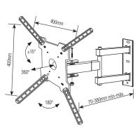 CaraterísticasSuporte Articulado Brasforma para TVs LCD, LED, Plasma, 3D e Smart TV de 10 até 55 polegadas (com VESA máximo de 400x400mm). Permite articulação, inclinação e rotação de 360º graus da base (5 movimentos). Permite Ajustar a TV para assistir de vários ângulos. Ideal para salas, escritórios, quartos, hospitais, restaurantes, entre outros locais. Permite visão modo retrato e paisagem e já vem montado!- Local de Instalação:- Inclinação: 15°- Articulação: 180°- ARTICULÁVEL E INCLINÁVEL - Para visão frontal, lateral e superior- Distância mínima da parede: 7cm- Distância máxima da parede: 38cm- Pontos de Fixação: 4 pontos- Suporta TV´s de 10 - 55- Capacidade de Carga: 30kg- Furação VESA: 50x50, 75x75, 100x100, 200x100, 200x200, 300x200, 300x300, 400x100, 400x400mm- Cor: Preto- Peso: 1,84kg- Dimensões do Produto (LxAxP): 400 x 400 x 80mm- Material: Aço carbono, tratamento anticorrosivo e pintura eletrostática- Garantia: 5 anos de garantia contra defeitos de fabricação através do suporte Brasforma (11) 2246-0222 ou [email protected]- Conteúdo da Embalagem: 1 Suporte para TV, Hastes extensoras para VESA 400x400mm, Kit de Parafusos, 1 Nível de bolha e 1 Manual de instruções- Verifique se a superfície de instalação apresenta resistência suficiente para uma instalação segura.- Fique atento a carga máxima indicada para o suporte.- Aconselhamos que a instalação seja realizada por um profissional da área.- Verifique se a furação de sua TV é compatível com o suporte.** As especificações podem ser alteradas sem aviso prévio *** Imagem meramente ilustrativa.