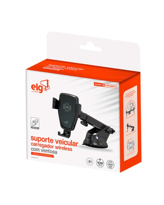 Caracterísicas:- Tecnologia e flexibilidade para o uso no veículo: O Suporte Veicular com Carregador Sem Fio e Ventosa CH360WV ELG é a solução ideal para quem busca praticidade, segurança e eficiência no uso do smartphone durante viagens, passeios ou deslocamentos de trabalho. Compatível com aparelhos de 4,5 a 7, ele permite o carregamento sem fio por indução, entregando até 10W de potência para recarga rápida, bastando encaixar o dispositivo sobre a base.- Fixação versátil e segura: Projetado com sistema de ventosa de alta aderência, o suporte pode ser fixado com firmeza no painel ou no para-brisa do veículo, oferecendo estabilidade mesmo em terrenos irregulares. O mecanismo de travamento por gravidade garante que, ao apoiar o celular na base inferior, as garras laterais se ajustem automaticamente, mantendo o aparelho firme e protegido. Todos os pontos de contato possuem acabamento emborrachado, que aumenta a aderência e evita riscos na carcaça do dispositivo.- Ajustes completos para melhor usabilidade: O CH360WV conta com haste telescópica e braço ajustável com giro de até 180°, permitindo regular a altura, inclinação e distância do smartphone de forma personalizada. Além disso, o suporte possibilita rotação de 360°, oferecendo liberdade para posicionar o aparelho tanto na orientação vertical quanto horizontal, ideal para chamadas, navegação GPS e visualização de conteúdos multimídia durante o trajeto.- Carregamento rápido e seguro: Com entrada micro USB (5V/2A ou 9V/1,67A) e saída wireless de até 10W, o suporte garante recarga eficiente e contínua, sem necessidade de cabos adicionais. O dispositivo é equipado com proteções integradas contra surtos elétricos, superaquecimento, sobretensão e curto-circuito, assegurando maior segurança tanto para o celular quanto para o veículo.- Marca de confiança: A ELG é reconhecida no mercado por oferecer soluções inovadoras em acessórios eletrônicos, com foco em tecnologia, funcionalidade e durabilidade. - Itens inclusos na embalagem: 1 Suporte Veicular e 1 cabo Micro USB 80cm.- Garantia do fornecedor: Garantia limitada de 1 ano contra defeitos de fabricação.- Dimensões do produto:Comprimento: 9cm;Largura: 0,7cm;Altura: 9cm.- Dimensões da embalagem:Comprimento: 17,2cm;Largura: 6,8cm;Altura: 19,5cm;Peso: 247g.* As especificações podem ser alteradas sem aviso prévio ** Imagem meramente ilustrativa.