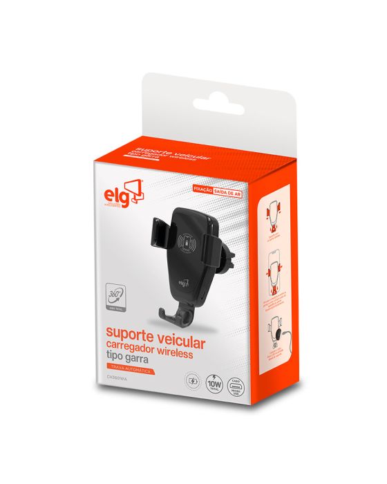 Caracterísicas:- Tecnologia e praticidade para o dia a dia: O Suporte Veicular com Carregador Sem Fio CH360WA ELG foi desenvolvido para proporcionar praticidade e eficiência durante o uso do celular no carro. Ideal para viagens, passeios ou deslocamentos a trabalho, ele permite recarregar o dispositivo móvel de forma prática e segura via tecnologia wireless, entregando até 10W de potência para carregamento rápido (compatível com aparelhos que suportam carregamento por indução).- Fixação segura e resistente: O sistema de garras laterais e inferior atua por gravidade: ao posicionar o celular sobre a base, o peso do aparelho aciona automaticamente o travamento lateral, garantindo estabilidade. As áreas de contato são emborrachadas, proporcionando aderência firme e protegendo o dispositivo contra riscos e danos. Produzido em termoplástico de alta resistência, o suporte garante durabilidade e excelente desempenho mesmo em uso contínuo.- Ajuste flexível e usabilidade aprimorada: Compatível com smartphones de 4,5 a 7, o CH360WA possui abertura ajustável e pode ser rotacionado em 360°, permitindo o uso tanto na posição vertical quanto horizontal. Essa flexibilidade favorece a navegação, chamadas e visualização de rotas no GPS com total segurança e conforto durante a condução.- Carregamento rápido e seguro: O carregador wireless integrado oferece potência de até 10W, com entrada micro USB de 5V/9V e saída wireless de 10W, assegurando um carregamento eficiente. Além disso, conta com sistemas de proteção contra surtos elétricos, superaquecimento, sobretensão e curto-circuito, garantindo segurança tanto para o aparelho quanto para o veículo.- Marca de confiança: A ELG é reconhecida no mercado por oferecer soluções inovadoras em acessórios eletrônicos, com foco em tecnologia, funcionalidade e durabilidade. - Itens inclusos na embalagem: 1 Suporte Veicular, 1 garra veicular e 1 cabo Micro USB 80cm.- Garantia do fornecedor: Garantia limitada de 1 ano contra defeitos de fabricação.- Dimensões do produto:Comprimento: 9cm;Largura: 0,7cm;Altura: 9cm.- Dimensões da embalagem:Comprimento: 10,4cm;Largura: 5,8cm;Altura: 17,4cm;Peso: 139g.* As especificações podem ser alteradas sem aviso prévio ** Imagem meramente ilustrativa.
