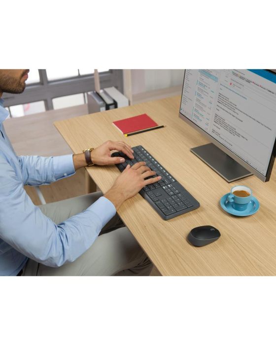 CaracterísticasUm time que aguenta a pressão do dia a dia. O combo de mouse e teclado MK235 reúne toda a qualidade e confiabilidade de um produto Logitech. O MK235 conta com alcance de rede sem fio de até 10 metros, exclusiva tecnologia wireless Logitech Advanced 2,4 GHz, até 36 meses de vida útil de bateria no caso do teclado e até 12 meses no caso do mouse e tecnologia plug-and-play: basta conectá-lo à porta USB para começar a usá-lo.- Tipo de conexão: Protocolo Logitech não unifying (2.4GHz) com receptor Nano USB- Alcance sem fio: 10 metros (33 pés)- Criptografia sem fio Padrão de criptografia avançado de 128 bits (AES) entre dispositivos e receptor- Suporte de software: Logitech SetPoint Teclado:- Teclas de perfil baixo- Altura do teclado ajustável- Bateria: 2 x AAA (incluídas)- Duração das pilhas (não recarregável): 36 meses- Layout ABNT 2- Teclas especiais: 15 teclas de função acessíveis com a tecla “fn”- Teclado número com Ponto (.) ao lado do zeroMouse:- Conectar/Energia: Botão de ligar/desligar- Tecnologia do sensor: Rastreamento óptico avançado- Bateria: 1 x AA (incluídas)- Duração das pilhas (não recarregável): 12 meses- Cor : Predomina a Cor Cinza- Peso: 846g- Dimensões Teclado: A x L x P: 137,5 x 435,5 x 20,5 mm - Dimensões Mouse: A x L x P: 97,7 x 61,5 x 35,2 mm - Dimensões Receptor Nano: A x L x P: 18,7 x 14,4 x 6,6 mm- Requisitos do Sistema: Windows® 7, Windows 8, Windows 10 ou posterior ,Chrome OS™, Linux® de kernel 2.6+, Porta USB - Garantia: 1 Ano de Garantia contra defeitos de fabricação através do Suporte Técnico Logitech (11) 3230-3580- Conteúdo da Embalagem: 1 Teclado, 1 Mouse , 1 Pilha alcalinas AA, 2 Pilhas alcalinas AAA, Manual do usuário e ((Nano Receptor fica dentro da caixa ou dentro do Mouse)* Testado em condições limitadas (máximo derramamento de líquido de 60 ml). Não mergulhe o teclado em líquido.**Vida útil das pilhas calculada com base em uma estimativa de dois milhões de toques por ano em um ambiente de escritório.A vida útil das pilhas varia, dependendo do usuário e das condições de computação.* O alcance sem fio pode variar, dependendo do ambiente e das condições de computação.* As especificações podem ser alteradas sem aviso prévio ** Imagem meramente ilustrativa