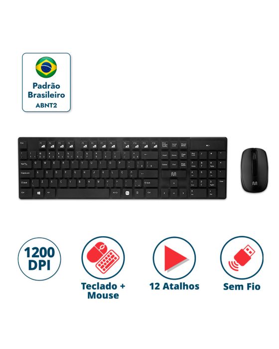 Características:- Conjunto sem fio com design flutuante e ergonomia avançada: O Kit Teclado e Mouse Sem Fio TC251 da Multilaser foi desenvolvido para oferecer praticidade, conforto e alto desempenho em ambientes corporativos, home office ou uso doméstico. Seu design ergonômico com teclas flutuantes garante uma experiência de digitação precisa e agradável ao longo do dia.- Tecnologia Plug and Play: Pronto para uso imediato, o kit conta com conexão sem fio via receptor USB 2.4GHz, dispensando instalação de drivers. Compatível com os principais sistemas operacionais do mercado: Windows, Linux e macOS.- Teclado com teclas de atalho multimídia: Com 107 teclas e 12 atalhos multimídia, o teclado proporciona maior agilidade nas tarefas do dia a dia, permitindo acesso rápido a funções como volume, navegador e e-mail.- Mouse com alta precisão e controle suave: Com resolução de 1200 DPI e 3 botões, o mouse garante navegação fluida e responsiva. O formato ergonômico favorece o uso prolongado com conforto e precisão.- Alimentação de longa duração: O kit é alimentado por 1 pilha AA (mouse) e 1 pilha AAA (teclado), com autonomia estimada de até 7 meses para o mouse e 10 meses para o teclado. Pilhas não inclusas.- Marca e confiabilidade: Com foco em inovação e usabilidade, os produtos Multi são desenvolvidos para facilitar o dia a dia, sempre com atenção à segurança, eficiência e custo-benefício.Dimensões do teclado:Comprimento: 43,21cm;Largura: 13,86cm;Altura: 2,2cm;Peso: 374g.Dimensões do mouse:Comprimento: 11,37cm;Largura: 6,14cm;Altura: 3,63cm;Peso: 64g.- Conteúdo da embalagem: 1 Teclado sem fio, 1 Mouse sem fio, 1 Receptor USB, 1 Guia rápido.- Garantia do fornecedor: 3 anos contra defeitos de fabricação.* As especificações podem ser alteradas sem aviso prévio ** Imagem meramente ilustrativa.