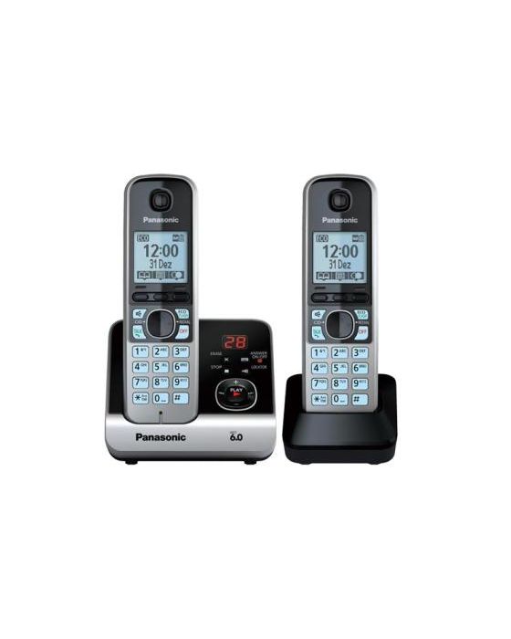Caracteristicas:O Telefone Panasonic Sem Fio com ID KX-TG6722LBB, possui visor e teclado iluminados na cor azul, fica fácil discar ou visualizar quem está chamando mesmo em ambiente escuros. Além disso chega de receber chamadas indesejadas! O aparelho manda sinal de linha ocupada para os números indesejados que você programar no aparelho.- Secretária Eletrônica: Sim, com contador de mensagens na base- Identificador de Chamadas: Sim- Frequência: Tecnologia DECT 6.0 (1.9 GHz)- Agenda Telefônica Até 100 nomes e números- Teclado iluminado em azul- Viva Voz: Sim- Localizador de monofone: Sim- Visor: Português- Cor Silver com black piano- Memória identificador de chamadas: Até 50 itens- Backup de energia: Funcionamento de até 2 horas mesmo sem energia- Modo ecológico inteligente: Com redução de até 90% de consumo- Bloqueio de chamadas indesejadas: Sim, até 30 números- Toques do telefone: 40 toques diferentes- Modo Noturno: Sim- Expansão de Ramal: Até 6 monofones (base+5)- Ajuste de volume da campainha : 6 níveis + Off- Voltagem: Bivolt- Conteúdo da Embalagem 2 Monofones, 2 Carregadores, 2 adaptadores AC, 4 Baterias Recarregáveis Ni-MH, 2 Prendedores de cinto- Peso: 680 gramas- Bateria: Ni-MH (AAA x 2) Duração de até 15 horas de conversação e até 7 dias em Standby- Garantia: 1 ano* As especificações podem ser alteradas sem aviso prévio ** Imagem meramente ilustrativa