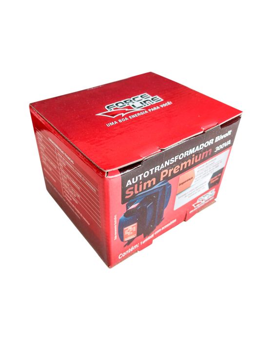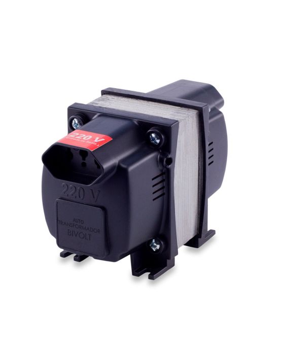 Caracteristicas: Autotransformador Slim Premium Force Line- 500 VA- Bivolt- 10A- Cordão para ligação incluso- Fusível térmico rearmávelEspecificações- Potência: 500 VA- Fusível térmico: Se ligar um equipamento que exceda a potência do autotransformador, o aumento da temperatura próximo a 130°C faz o fusível desligar oequipamento.Quando a temperatura baixa próximo a 70°C ele volta a funcionar.- Entrada / Saída: Transforma 120V em 220V, ou 220V em 120V. - Bivolt- Frequência: 60Hz- Gabinete: Caneca plástica- Sem alça- Adaptador: Exclusivo sistema de W, que elimina o risco de choques elétricos.- Cordão: 3 x 0,75mm² 80 cm de acordo com as normas de plugues e tomadas NBR14136- Tiomadas: Tomada elétrica tripolar- Cor: Preto- Dimensões: 13,5 x 11 x 10cm- Peso: 1,2kg- Conteúdo da embalagem: 1 autotransformador, 1 cordão de ligação, 1 adaptador tripolar.- Garantia: 3 mesesRegra de conversão de VA para Watts ou Watts para VA:- Conversão de VA para Watts: Potência em VA divide por 1,66- Conversão de Watts para VA: Potência em Watts multiplica por 1,66 * As especificações podem ser alteradas sem aviso prévio ** Imagem meramente ilustrativa