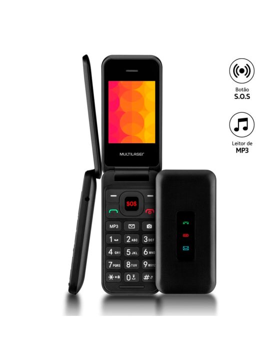 Características:O Flip Vita 3G conta com conexão 3G de fácil navegação, melhorando a sua experiência e facilitando tarefas simples do seu dia.- Com o botão SOS é possível realizar chamadas de emergência ao toque de um botão- E para ficar ainda mais conectado, fale em dobro com duas operadoras, o Flip Vita 3G é dual chip- Com radio FM e MP3 player para ouvir aquela sua música favorita- Precisa de uma luz de emergência? Use a função lanternaEspecificações técnicas- Tela: QVGA 2,4- Frequências: 2G (850/900/1800/1900) / 3G (850/2100)- Bluetooth: v2.1- Câmera digital: 0,8MP- Bateria: 800mAh- Cartões SIM: Compartimento 1 mini SIM Card (3G/2G) e compartimento 2 micro SIM Card (2G)- Memória expansível: Cartão MicroSD de até 32Gb (não incluso)- Cor: Preto- Dimensões (CxLxA): 11,27 x 4,68 x 1,3cm- Peso: 215g- Conteúdo de embalagem: 1 celular, 1 carregador, 1 manual de instruções, 1 bateria.* As especificações podem ser alteradas sem aviso prévio ** Imagem meramente ilustrativa.