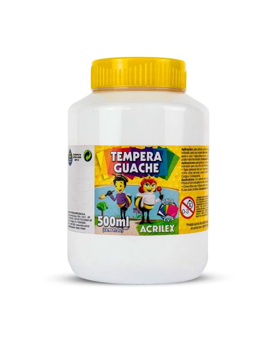 Caracteristicas:-Foi desenvolvida para trabalhos artísticos e escolares. A Têmpera Guache Acrilex é um importante instrumento para o desenvolvimento da criatividade, coordenação motora e percepção visual das cores. -Não é tóxica, é solúvel em água. Pode ser aplicada em papel, papel cartão, cartolina, gesso, madeira e cerâmica. * As especificações podem ser alteradas sem aviso prévio ** Imagem meramente ilustrativa.