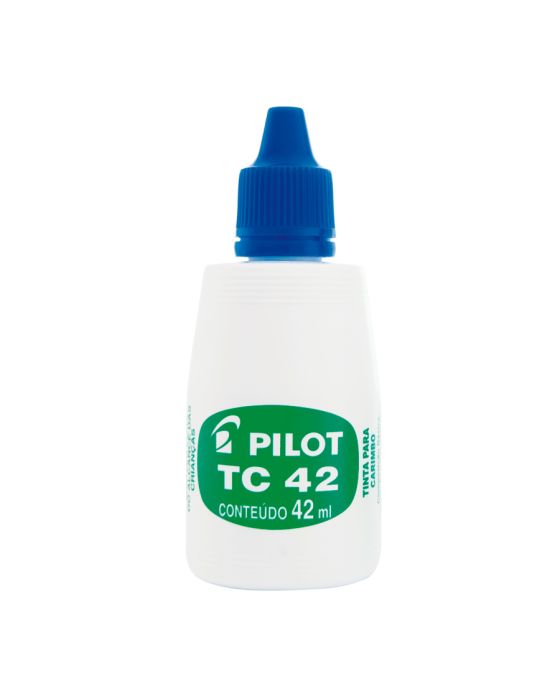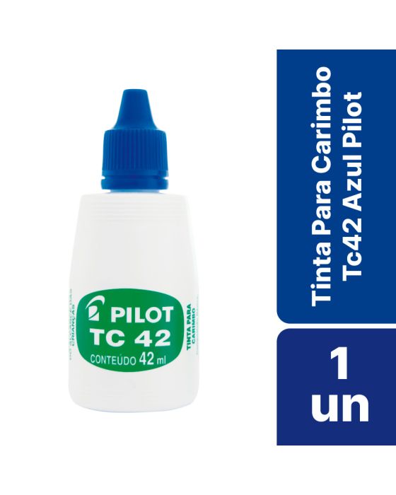 Características:Conheça a Tinta para Carimbo PILOT TC 42 e eleve a qualidade dos seus projetos. Garanta marcações nítidas e duradouras em todos os seus projetos de carimbos.A Tinta para Carimbo TC 42 é a escolha certa para todos os tipos de almofadas para carimbo. Desenvolvida à base de água, essa tinta oferece alta durabilidade e uma consistência suave que proporciona resultados impecáveis em cada impressão.Detalhes:- Marca: Pilot;- Modelo: TC42;- Referência: 1060005;- Linha: Tintas para Marcador;- Volume: 42ml;- Cor: Azul;- Contém: 1 unidade do produto;- Para todos os tipos de almofadas;- Composicao quimica especial;- Tinta a base de agua.Armazenagem:- Evite expor o produto em temperaturas acima de 45?°C e exposição direta aos raios solares;- Armazene em local ventilado, fresco, seco e cobertos;- Mantenha a embalagem fechada e longe de crianças e alimentos.Recomendações:- Proibido comer ou beber durante o manuseio;- Lavar bem as mãos após o uso do produto.Composição:- Tinta à base de água, aditivos, corantes e resinas (mistura).ATENÇÃO! MANTENHA FORA DO ALCANCE DAS CRIANÇAS E DOS ANIMAIS DOMÉSTICOS.* As especificações podem ser alteradas sem aviso prévio ** Imagem meramente ilustrativa.
