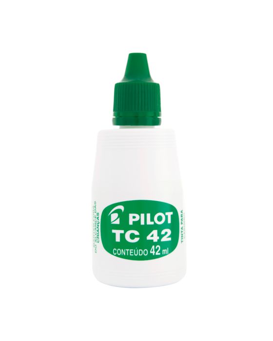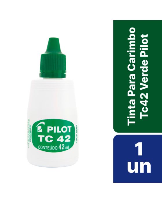 Características:Conheça a Tinta para Carimbo PILOT TC 42 e eleve a qualidade dos seus projetos. Garanta marcações nítidas e duradouras em todos os seus projetos de carimbos.A Tinta para Carimbo TC 42 é a escolha certa para todos os tipos de almofadas para carimbo. Desenvolvida à base de água, essa tinta oferece alta durabilidade e uma consistência suave que proporciona resultados impecáveis em cada impressão.Detalhes:- Marca: Pilot;- Modelo: TC42;- Referência: 1060005;- Linha: Tintas para Marcador;- Volume: 42ml;- Cor: Verde;- Contém: 1 unidade do produto;- Para todos os tipos de almofadas;- Composicao quimica especial;- Tinta a base de agua.Armazenagem:- Evite expor o produto em temperaturas acima de 45?°C e exposição direta aos raios solares;- Armazene em local ventilado, fresco, seco e cobertos;- Mantenha a embalagem fechada e longe de crianças e alimentos.Recomendações:- Proibido comer ou beber durante o manuseio;- Lavar bem as mãos após o uso do produto.Composição:- Tinta à base de água, aditivos, corantes e resinas (mistura).ATENÇÃO! MANTENHA FORA DO ALCANCE DAS CRIANÇAS E DOS ANIMAIS DOMÉSTICOS.* As especificações podem ser alteradas sem aviso prévio ** Imagem meramente ilustrativa.