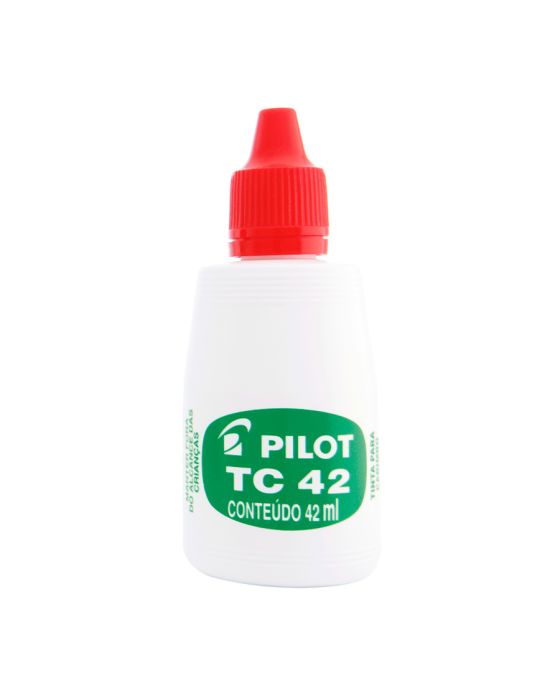 Características:Conheça a Tinta para Carimbo PILOT TC 42 e eleve a qualidade dos seus projetos. Garanta marcações nítidas e duradouras em todos os seus projetos de carimbos.A Tinta para Carimbo TC 42 é a escolha certa para todos os tipos de almofadas para carimbo. Desenvolvida à base de água, essa tinta oferece alta durabilidade e uma consistência suave que proporciona resultados impecáveis em cada impressão.Detalhes:- Marca: Pilot;- Modelo: TC42;- Referência: 1060005;- Linha: Tintas para Marcador;- Volume: 42ml;- Cor: Vermelha;- Contém: 1 unidade do produto;- Para todos os tipos de almofadas;- Composicao quimica especial;- Tinta a base de agua.Armazenagem:- Evite expor o produto em temperaturas acima de 45?°C e exposição direta aos raios solares;- Armazene em local ventilado, fresco, seco e cobertos;- Mantenha a embalagem fechada e longe de crianças e alimentos.Recomendações:- Proibido comer ou beber durante o manuseio;- Lavar bem as mãos após o uso do produto.Composição:- Tinta à base de água, aditivos, corantes e resinas (mistura).ATENÇÃO! MANTENHA FORA DO ALCANCE DAS CRIANÇAS E DOS ANIMAIS DOMÉSTICOS.* As especificações podem ser alteradas sem aviso prévio ** Imagem meramente ilustrativa.