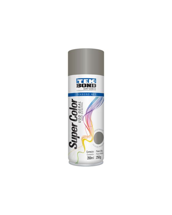 Caracteristicas:O Tekbond Spray Supercolor uso geral foi desenvolvido com resinas acrílicas de secagem rápida e ótima resistência as intempéries, proporcionam excelentes acabamentos, poder de cobertura e efeito decorativo. Pode ser utilizada em ambientes internos e externos para aplicações em ferro, aço, madeira, cerâmica, gesso, entre outros. Instruções para uso- Preparo da superfície:1. Proteja as partes que não serão pintadas com papel, papelão ou plástico.2. Aplique de 2 a 3 demãos em camadas bem finas.3. Entre cada demão de verniz, aguarde um intervalo de 1 a 3 minutos.4. Para o toque aguarde um intervalo de 30 minutos.5. Para manuseio da peça aguarde um intervalo de 3 horas. 6. Cura total em 24 horas e para testes mecânicos, recomendamos 72 horas.Rendimento aproximado: 1,7 m2 a 2,1 m2 por embalagem.OBSERVAÇÃO: AGITAR BEM A LATA ANTES DO USO E ENTRE AS DEMÃOS. SE OCORRER O ENTUPIMENTO DA VÁLVULA, RETIRE O BICO E MERGULHE-O EM THINNER OU ACETONA. SE NECESSÁRIO DESOBSTRUA O ORIFÍCIO COM UMA AGULHA.Verniz: É um verniz desenvolvido para o acabamento de toda as cores da linha Super Color.- Armazenamento: Manter em local coberto e ventilado (temperatura inferior a 50° C). Nestas condições, o produto em sua embalagem original e lacrada tem garantia de 3 anos a partir da sua data de fabricação.- Informações gerais: Não exponha ou armazene este produto em temperatura superior a 50ºC (risco de explosão). Armazenar as embalagens em local bem ventilado, à temperatura ambiente, distante de fontes de ignição. Área coberta, fresca, seca e ventilada. Armazenar a lata em pé. Estocar em temperaturas inferiores a 50°C.* As especificações podem ser alteradas sem aviso prévio ** Imagem meramente ilustrativa