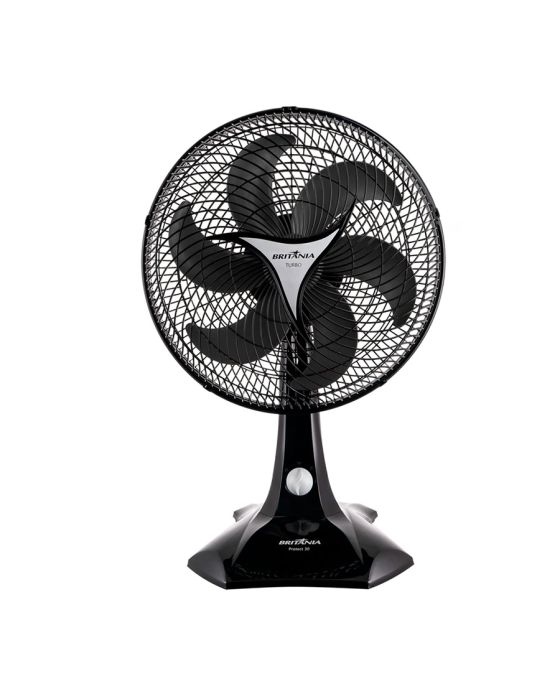 Características:O Ventilador Britânia 2 em 1 Turbo 55W Protect 30 Six possui 6 pás e 3 velocidades, ótima performance para te refrescar no verão! A hélice com 6 pás e diâmetro de 30 cm garante excelente desempenho de ventilação, além de proporcionar uma ampla distribuição do ar no ambiente devido seu sistema oscilante.O Ventilador Britânia Protect pode ser utilizado como Ventilador de mesa ou como Ventilador de parede, ele se adapta a sua necessidade! Sem contar a sua inclinação vertical regulável que funciona para direcionar melhor o fluxo de ar. Conta também com grade plástica, que pode ser facilmente removida, para facilitar no momento da limpeza.O verão não precisa ser difícil. Tenha o Ventilador Britânia 2 em 1 Turbo 55W Protect 30 Six sempre por perto, clima fica agradável e você mais feliz!Detalhes:- Marca: Britânia;- Modelo: Protect 30 Six;- Referência: 33011094;- Linha: Ventiladores;- Cor: Preto;- Tensão: 127V;- Potência: 60W;- Tipo de instalação: Mesa ou coluna;- Contém: 1 unidade do produto;- Número de velocidades: 3 velocidades (mínimo, média e máxima);- Quantidade de pás: 6 pás;- Hélice com diâmetro de 30cm;- Grade frontal removível;- Produto versátil, instalação de mesa ou coluna;- Inclinação vertical regulável;- Muito silencioso;- Sistema Oscilante;- Mais força, mais vento, mais potência, mais versatilidade e mais silêncio.Diferenciais:- Hélice de 6 pás- Grade que obedecer às normas de segurança (contato com partes móveis);- Oscilação horizontal automática com novo sistema de acionamento (botão integrado à carcaça);- Novo sistema de articulação para ajuste da inclinação vertical (sem borboleta);- Porta-fio;- Novo sistema de travamento entre grade frontal e traseira;- Remoção da grade frontal conforme normas de segurança;- Motor com fusível térmico de segurança;- Alça na grade traseira para transportar o aparelho.Energia:- Tensão: 127V;- Potência: 60W;- Classificação energética: A.Medidas:- Dimensões do produto: 30 x 35,5 x 54,5cm (CxLxA);- Dimensões da embalagem: 14,9 x 43,7 x 46cm (CxLxA);- Peso do produto: 1,54kg;- Peso da embalagem: 1,91kg.Conteúdo da embalagem: 1 ventilador Britânia Protect 30 Six e 1 manual de instruções.Garantia do fornecedor: 1 ano contra defeitos de fabricação.* As especificações podem ser alteradas sem aviso prévio ** Imagem meramente ilustrativa.