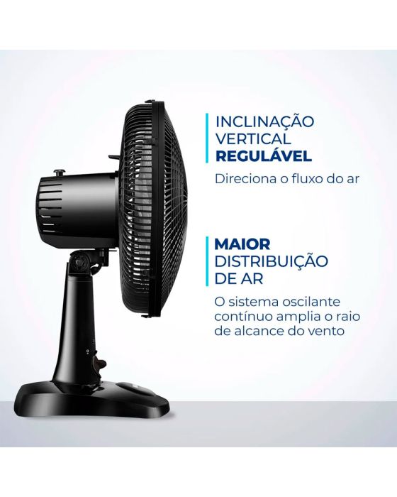 Características:O ventilador Super Power VSP-30-B possui 30 cm de diâmetro e hélice com 6 pás, garantindo um ambiente mais refrescante e agradável. O Sistema Oscilante Contínuo amplia o raio do vento no ambiente e a Inclinação Vertical Regulável é perfeita para o direcionamento do fluxo de ar.Detalhes:- Marca: Mondial;- Modelo: Super Power;- Referência: VSP-30-B;- Linha: Ventiladores;- Cor: Preto;- Tensão: 127V;- Potência: 60W;- Tipo de instalação: Mesa;- Uso: Somente uso interno;- Contém: 1 unidade do produto;- Número de velocidades: 3 velocidades (mínimo, média e máxima);- Quantidade de pás: 6 pás;- Hélice com diâmetro de 30cm;- Grade frontal e traseira removível;- Inclinação vertical regulável;- Mais silêncio e conforto;- Sistema Oscilante.Diferenciais:- Vento Super Power: A linha de Ventiladores Super Power possui 30cm de diâmetro e 6 Pás. O design, aliado à potência, promove maior intensidade do vento e é garantia de um ambiente fresco e agradável.- Mais Silêncio e Conforto: O sistema de ventilação da Mondial apresenta baixo nível de ruído, assegurando o silêncio necessário para momentos de concentração e uma excelente noite de sono.- Maior Distribuição de Ar: O Sistema Oscilante Contínuo amplia o raio de alcance do vento no ambiente, permitindo uma distribuição de ar mais eficiente nos cômodos da casa.- Inclinação Vertical Regulável: Para um direcionamento ideal do fluxo do ar.- Controle de Velocidade: As 3 opções de velocidade permitem adequar o vento à sua necessidade: Máxima Turbo, Média Conforto e Mínima Silencioso.- Facilidade na Limpeza: A grade frontal removível oferece mais facilidade na limpeza das hélices, o que simplifica a lavagem e a remoção de poeira, e garante melhor qualidade do ar.- Alça de Transporte + Porta-Fio: Além do design compacto, a alça traseira permite que o ventilador seja transportado entre os cômodos da casa com facilidade. Com o porta-fio embutido, você armazena o fio elétrico dentro do aparelho após o uso.Energia:- Tensão: 127V;- Potência: 60W.Medidas:- Dimensões do produto: 49 x 35 x 24,5cm (AxLxP);- Peso: 1,670kg.Conteúdo da embalagem: 01 Ventilador de Mesa Super Power 30cm 6 Pás VSP-30-B 127V Mondial e Manual de Instruções.Garantia do fornecedor: 1 ano contra defeitos de fabricação.* As especificações podem ser alteradas sem aviso prévio ** Imagem meramente ilustrativa.